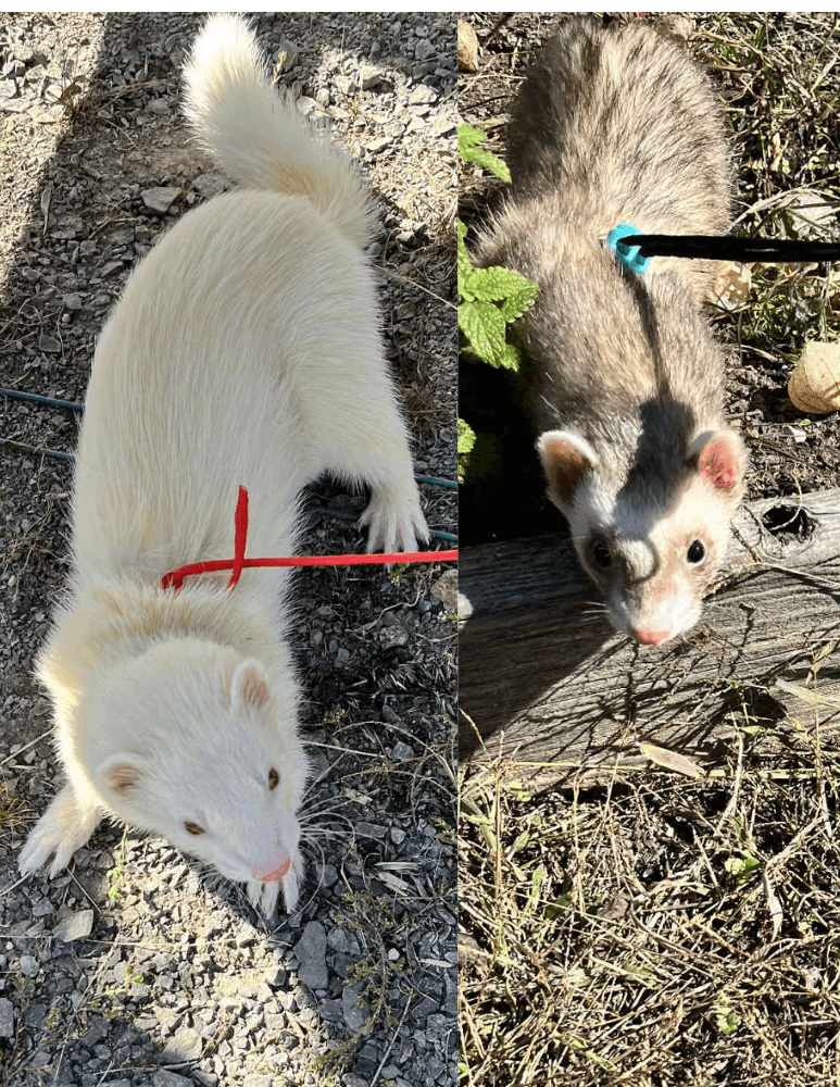 Our Story: These 2 are quite the pair! Meatball, a big softy at heart, just needs a little time to trust since he’s both deaf and vision impaired. Once he warms up, his playful energy shines. Spaghetti, always ready for adventure, loves short snuggles before dashing off to explore. These boys have learned the joy of play, love, and being true ferrets. Now, they’re ready to find their happily ever after with a family who’ll adore them for exactly who they are.