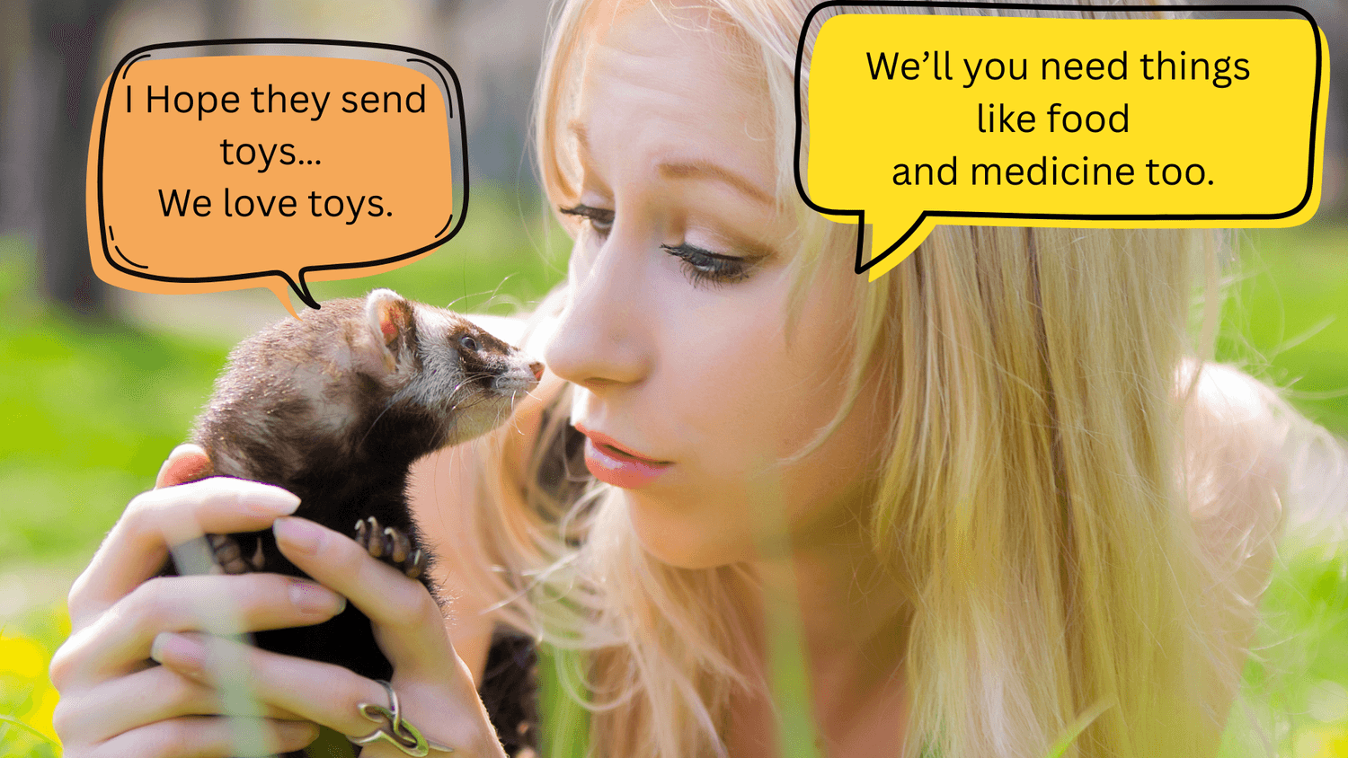 Donate once, monthly, or send supplies — every bit makes a ferret’s life brighter.